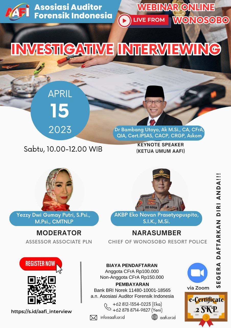 Asosiasi Forensik Auditor Indonesia (AAFI PAPANI) mengundang Bapak/Ibu dalam Webinar Online dengan Tema INVESTIGATIVE INTERVIEWING